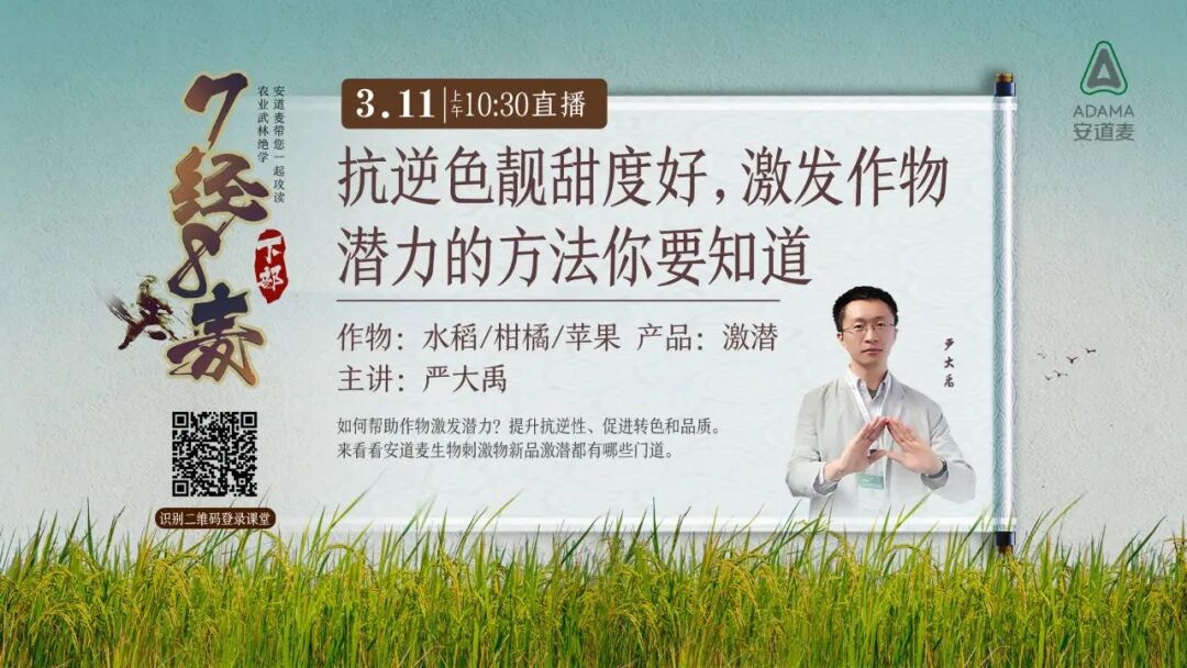 如何通过调节作物的次生代谢,提升作物抗逆能力,使作物本身生长更加健康,收获更好品质?3月11日(明天)上午10:30,安道麦直播课程《抗逆色靓甜度好,激发作物潜力的方法你要知道》带你探索激发作物潜力的奥秘!扫描下图中二维码提前进入直播间。